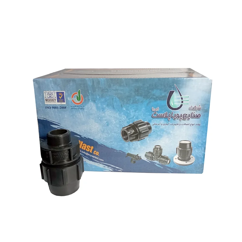 این محصول اتصال (بست) نر پلی اتیلن است که برای متصل کردن لوله های پلی اتیلن به کمربندهای پلی اتیلن یا اتصالاتی مانند بوشن و زانو که از داخل رزوه دارند مورد استفاده قرار می گیرد.